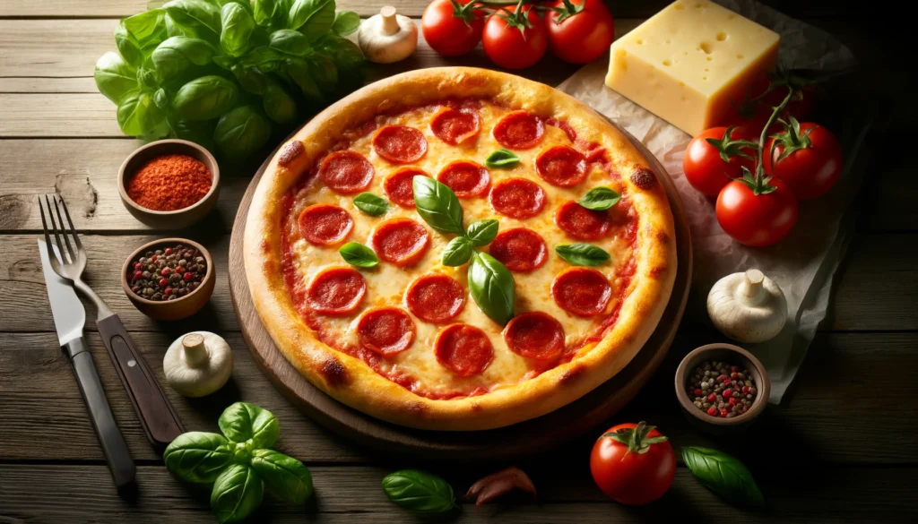Піца Пепероні – це піца для любителів гострих відчуттів. Основними інгредієнтами є томатний соус, моцарела та шматочки пепероні. Вона відзначається насиченим смаком та апетитним виглядом.