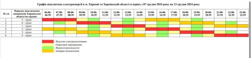 Наступні шість днів у Харківській області продовжать діяти шість черг знеструмлень. У кожній із груп світло вимикатимуть по три години. Але це за умови, якщо “Укренерго” не введе додаткові аварійні вимкнення.