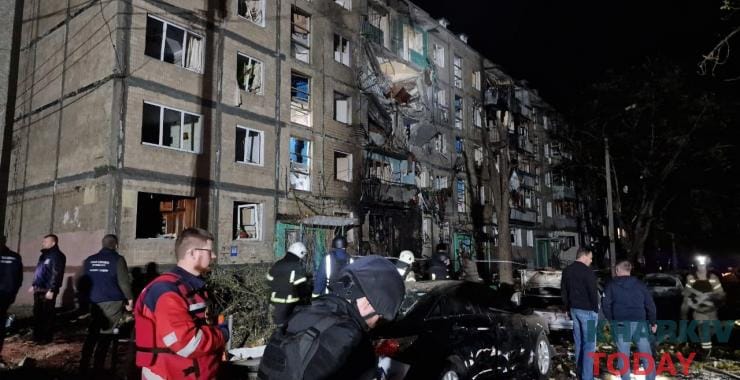 Під завалами п’ятиповерхівки можуть перебувати люди, повідомив начальник ХОВА Олег Синєгубов, тому уночі рятувальники вели пошуки із залученням собак.