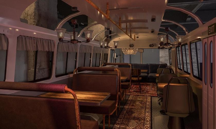 Інтер’єр ресторану переносив відвідувачів у часи 90-х. Незвичайною частиною дизайну став автобус ПАЗ, у якому розташовано кілька столиків.