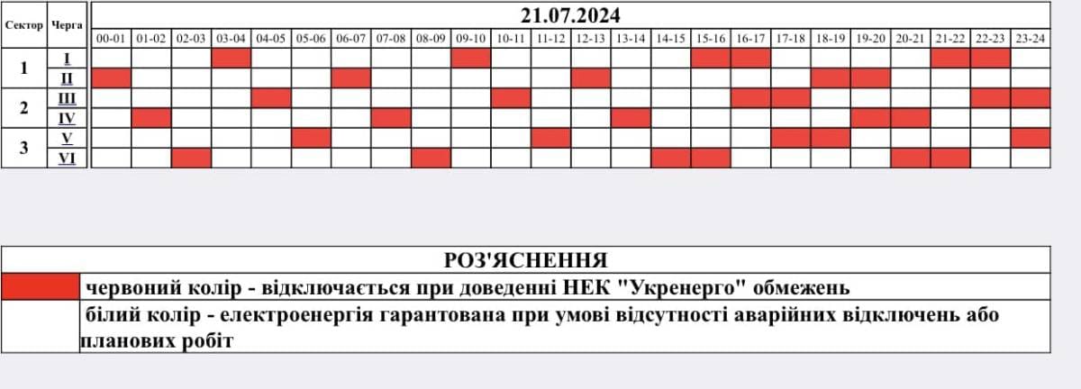 На 21.07.2024 р. по команді НЕК “Укренерго” буде застосовано: