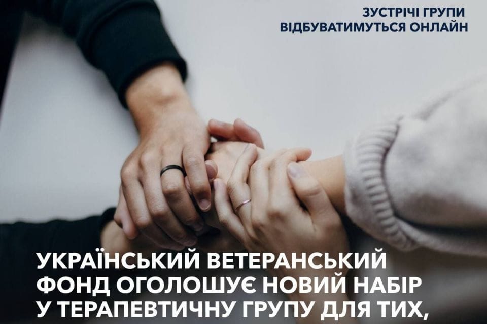 Український ветеранський фонд оголошує новий набір у терапевтичну групу для тих, хто зазнав страждань внаслідок війни — людей, які чекають рідних з фронту, внутрішньо переміщених осіб та усіх, хто відчуває тривогу і знесилення через війну.