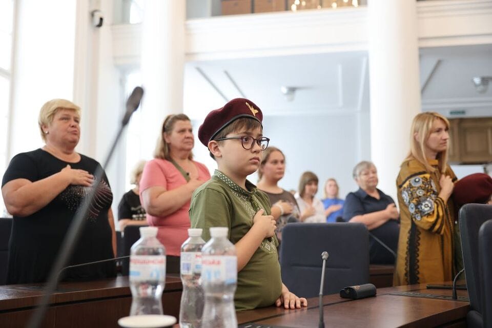 У великій сесійній залі міської ради розставили прапори усіх структур Збройних Сил України. Також запалили свічку як символ вічної пам’яті про Героїв. Розпочали з урочистого виконання Державного Гімну.