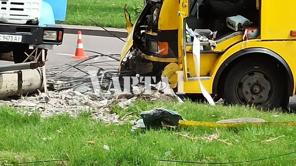 Сьогодні, 18 липня, о 9:53 на просп. Червоної Калини в районі ТЦ «ВАМ» міська маршрутка №41 в’їхала в опору. Усі живі.