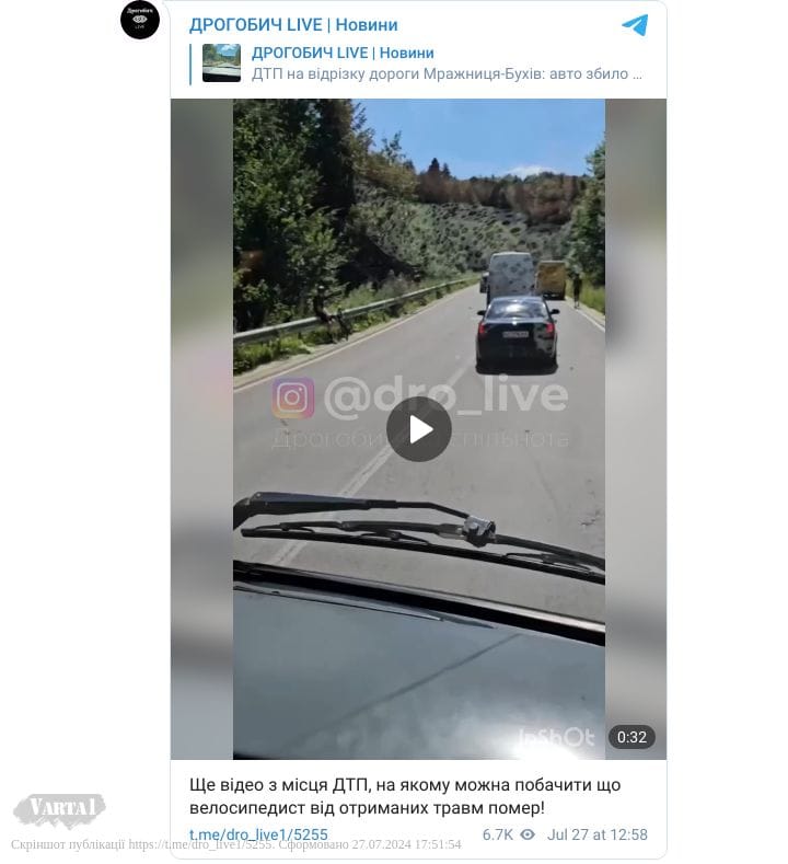 Сьогодні, 27 липня, сталася ДТП на серпантині автодороги Борислав-Східниця. Про це повідомляє спільнота @dro_live.