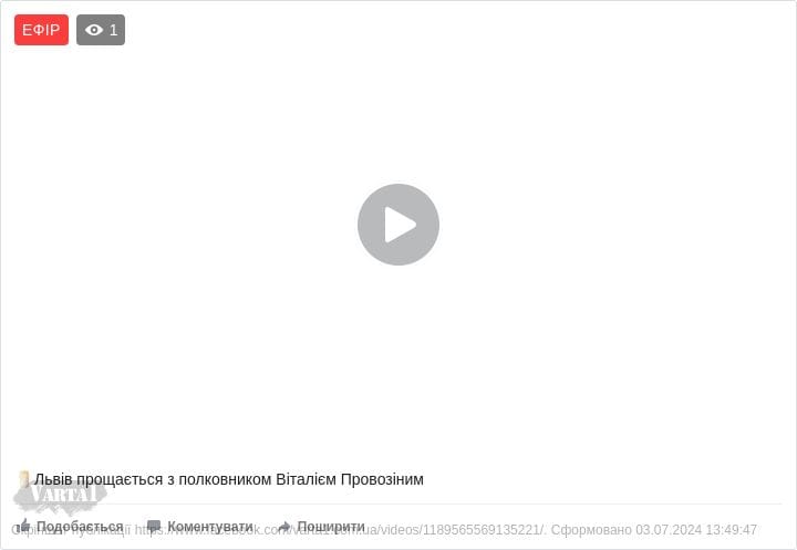 Сьогодні, 3 липня, у Львові відубвається прощання з полковником Віталієм Провозіним. Про це повідомляє Варта1.
