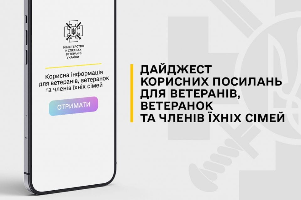 Щоб не загубити корисну інформацію про надання статусів, отримання безкоштовної психологічної допомоги та медичних послуг, призначення й виплати одноразової грошової допомоги, компенсацію на придбання житла, конкурсні програми з підтримки ветеранського підприємництва від Українського ветеранського фонду Мінветеранів та інші актуальні питання, пропонуємо ознайомитися з інформаційним дайджестом.