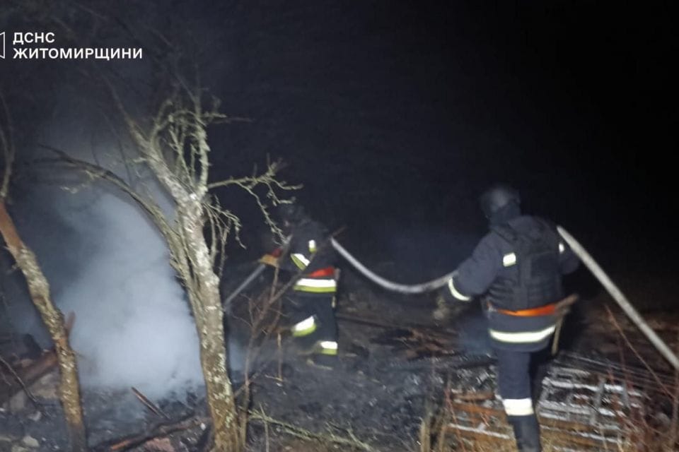 Сьогодні вночі рятувальники залучались на гасіння пожежі, що виникла через ворожу атаку у Житомирському районі. Там внаслідок події пошкоджено дерев’яну занедбану будівлю, а також зайнявся сарай.