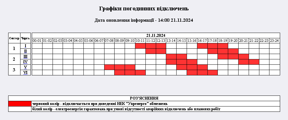 На 14:00 годину 21.11.2024 р. НЕК “Укренерго” змінив застосування кількості черг: