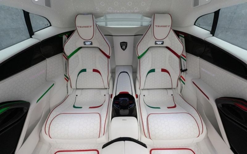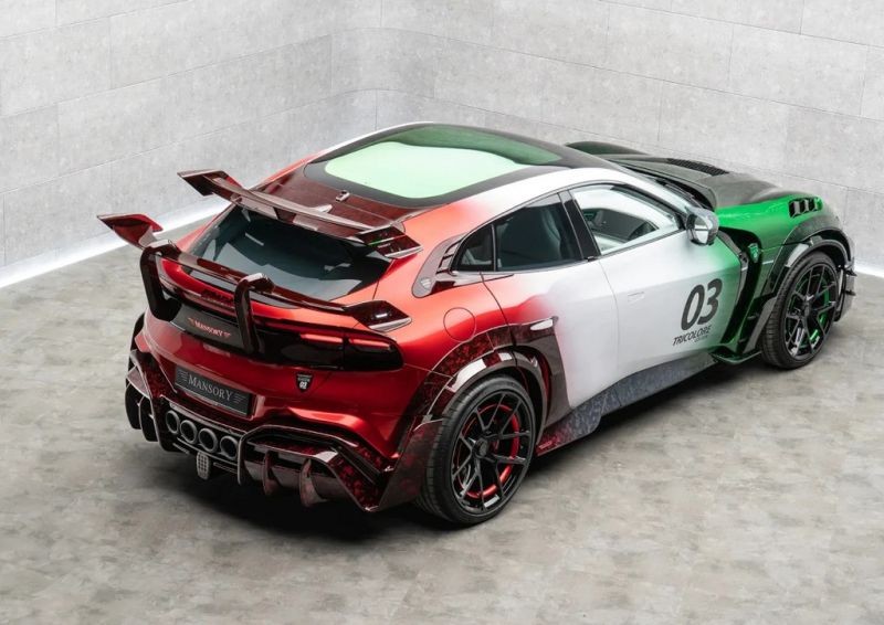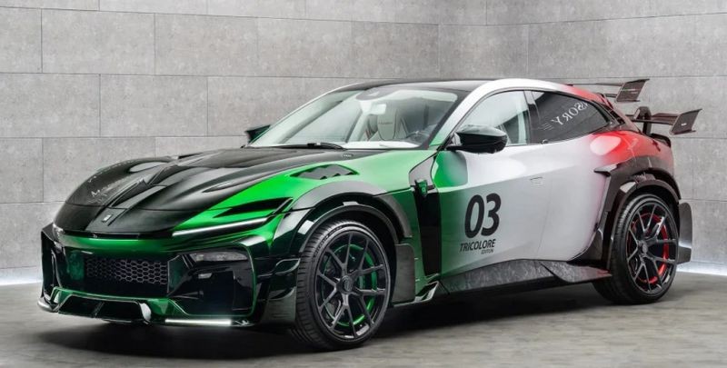 У Mansory і раніше виконували тюнінг Ferrari Purosangue, проте новий проєкт вийшов екстравагантнішим. Його пофарбували в кольори італійського прапора, а ззаду встановили одразу два антикрила та чотири широкі вихлопні труби.