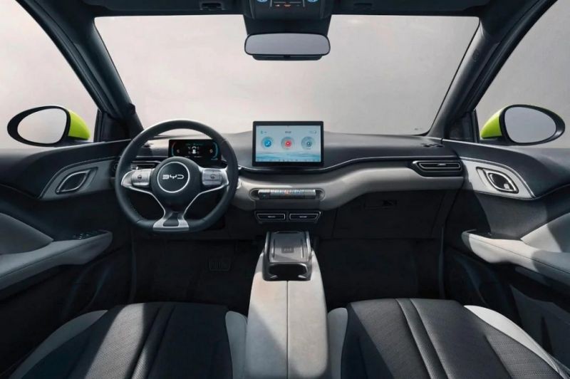 У салоні BYD Dolphin Surf встановили компактний цифровий щиток приладів та великий 10,1-дюймовий тачскрін, який може обертатися. Об’єм багажника становить 308-1037 л.