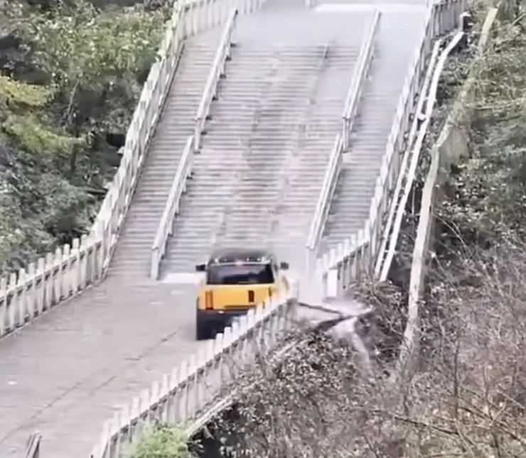 У Chery намагалися повторити трюк, який у 2018 році провернув Land Rover. Тоді Range Rover Sport заїхав сходами до арки “Небесні ворота” на горі Тянмень. Він без особливих проблем подолав 300-метрову дистанцію з 999 сходинками та кутом підйому до 60°.
