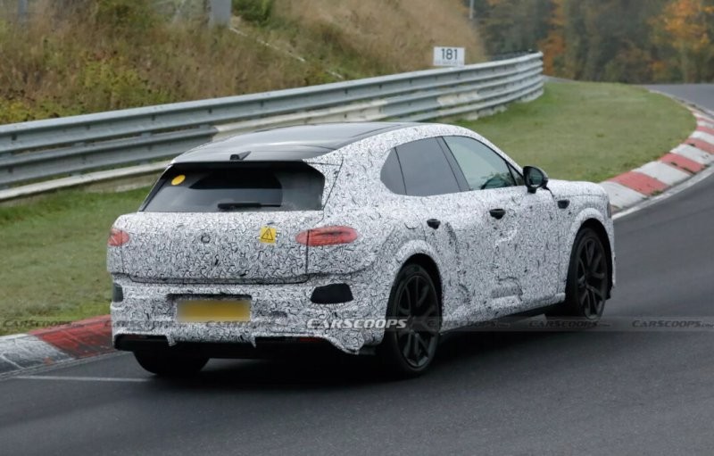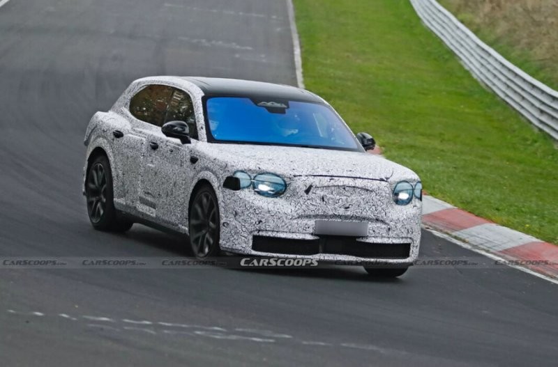 Модель буде компактнішою за Bentayga, але все ще великою, приблизно на рівні електричного Porsche Cayenne. На фото видно фейкові круглі фари, що приховують справжній дизайн.