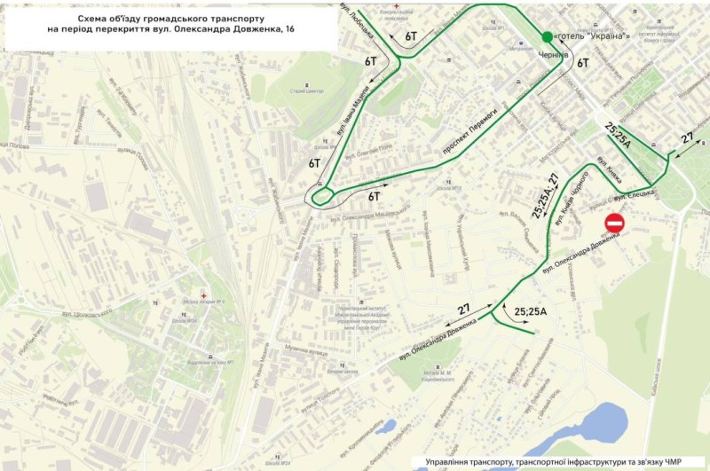 До автобусних маршрутів № 25/25А та № 27 вносяться зміни. Автобуси об'їжджатимуть перекриту ділянку вулицями Єлецька, Княжа та Князя Чорного в прямому та зворотному напрямках.