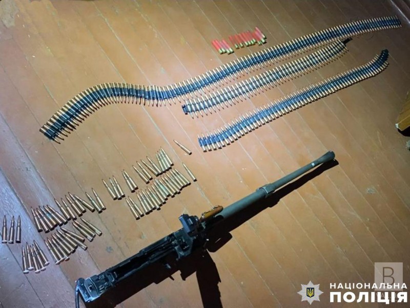Під час обшуку поліцейські виявили та вилучили кулемет ПКТ (кулемет Калашникова танковий, – ред.), карабін Мосіна з ознаками кустарної переробки, незареєстровану гладкоствольну рушницю, майже 300 набоїв до нарізної та 35 – до мисливської зброї.