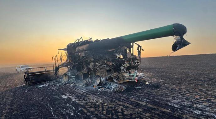 Комбайн у Боровій згорів повністю. Фото: ХОВА