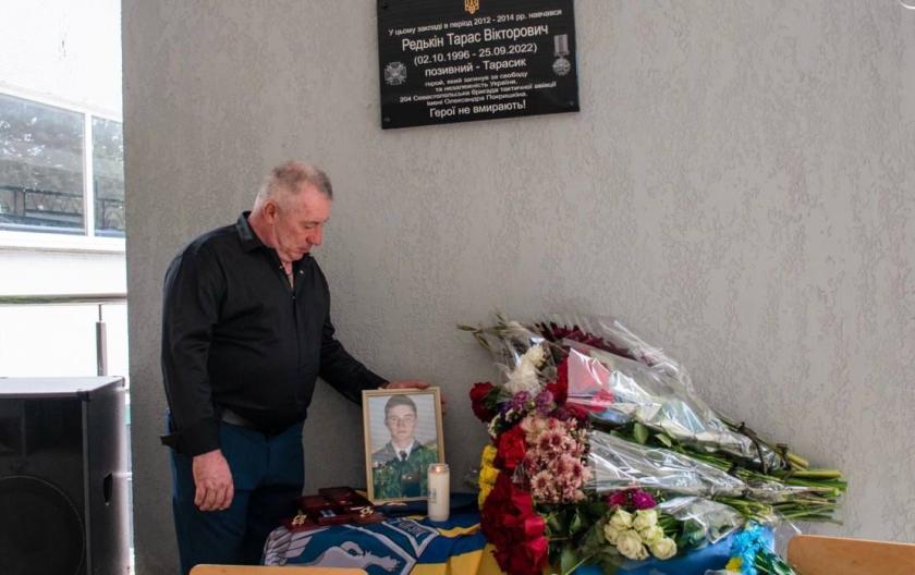Майор Тарас Редькін героїчно загинув 25 вересня 2022 року. Через рік на фасаді салтівської школи, де він навчався, відкрили меморіальну дошку, а в 23 травня 2024 року на честь льотчика перейменували вулицю Пєшкова.