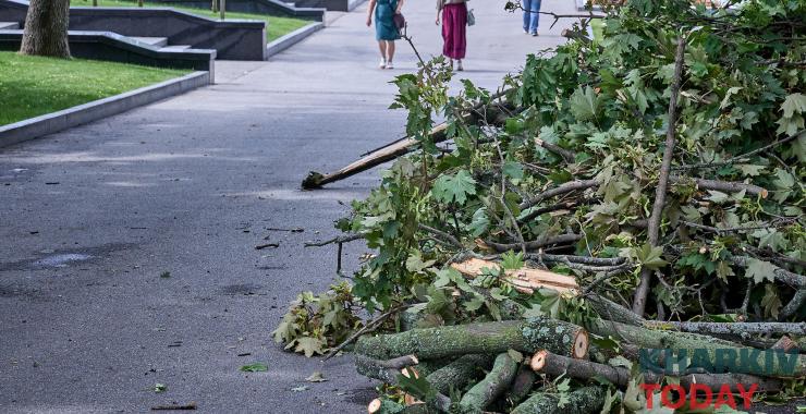 У місті через негоду 12 липня зламалися понад 1000 дерев і стільки ж гілок. Увесь день 13 липня співробітники комунальних служб розчищали магістралі, прибирали у парках та скверах. Надвечір більшість трамвайних і тролейбусних маршрутів у Харкові відновили.