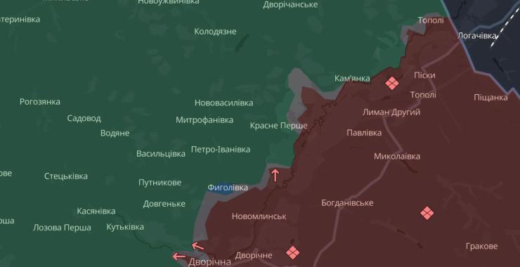Ворог, починаючи з осені 2024 року, зміг створити щонайменше шість точок і закріпитися на них вздовж лінії Западне — Дворічна — Новомлинськ — Тополі. Нещодавно, за даними аналітиків DeepState, росіяни просунулись ще на одному “острівці” — неподалік села Красне Перше, між селищем Дворічна і прикордонними Тополями.