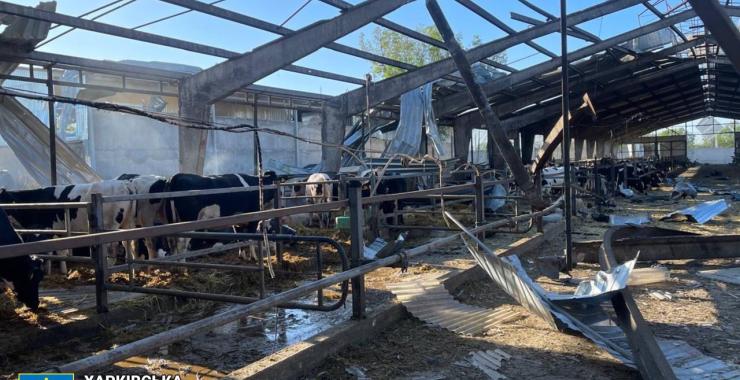 “Внаслідок влучання десяти БпЛА типу “Шахед” пошкоджено будівлю телятника, адмінбудівлю, три коровники, два складських приміщення та автомобіль. Загинуло 22 голови великої рогатої худоби та поранено 30 корів”, – повідомив начальник ХОВА Олег Синєгубов.