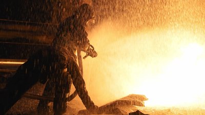Рятувальник гасить пожежу. ДСНС Полтавщини