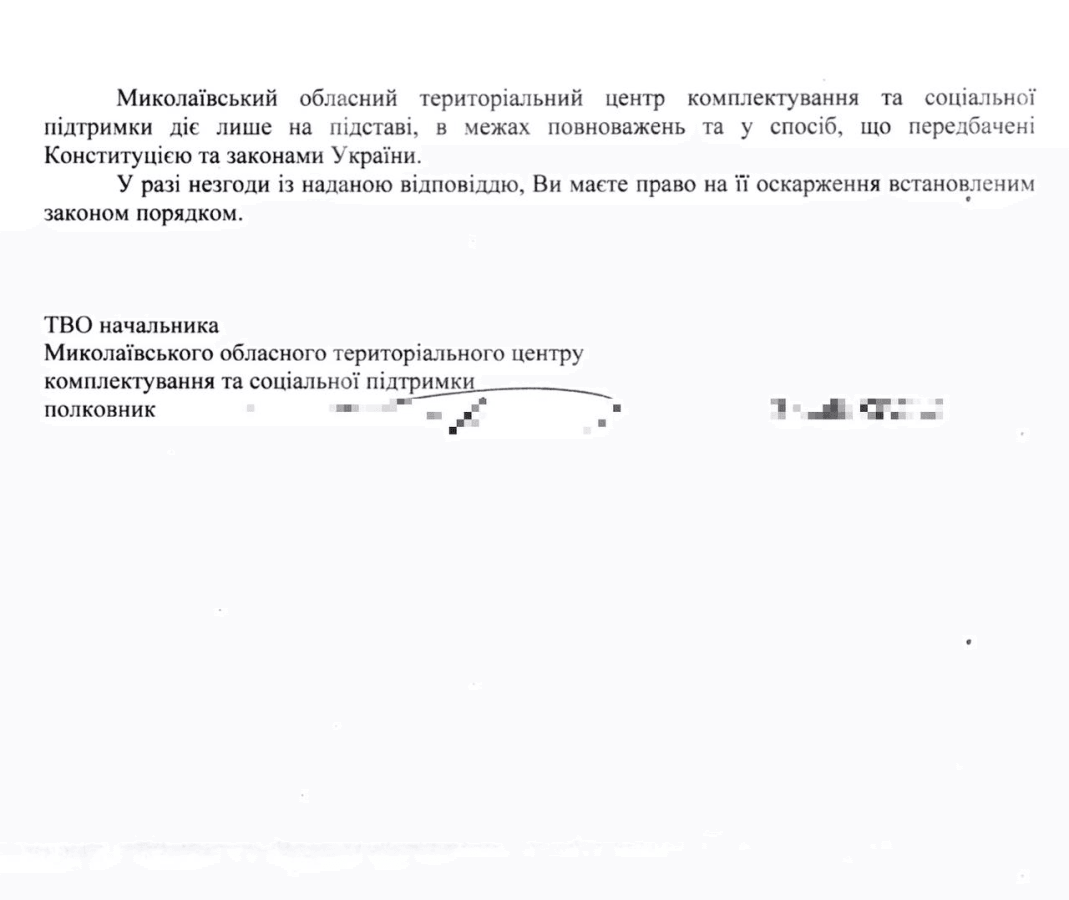“Далі приписка, що Миколаївський обласний центр комплектування та соціальної підтримки діє в межах чинного законодавства. Проблематика всієї цієї історії, що тепер таку людину демобілізувати неможливо. Підприємство втрачає критично важливого працівника. А вся система бронювання довіру від підприємств, які в межах чинного законодавства бронюють критично важливих працівників”, – наголосив нардеп.