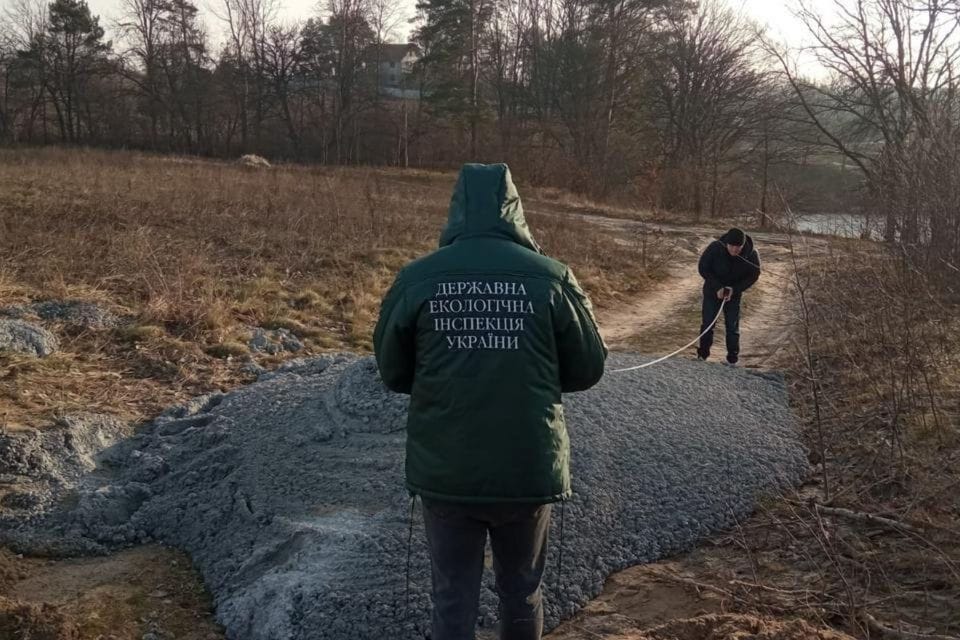 Фахівці виявили факт розливу бетонної суміші на відкриту земельну ділянку розміром 5 м х 4 м та середньою висотою 0,35 см (загальний об’єм – 7 м3).