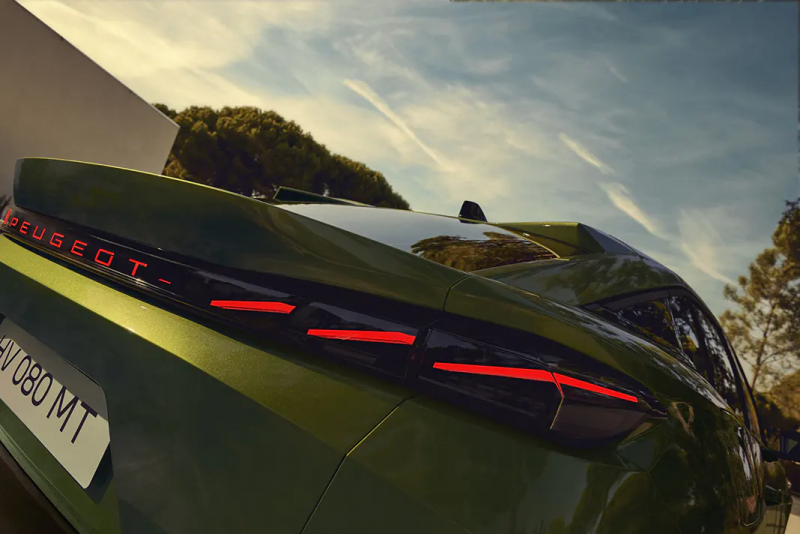 Задня частина. Новий PEUGEOT 408 став першою моделлю в лінійці бренду з підсвіченим написом PEUGEOT ззаду. По обидва боки всі версії нового PEUGEOT 408 оснащені впізнаваним світловим підписом із трьома похилими LED-«кігтями».