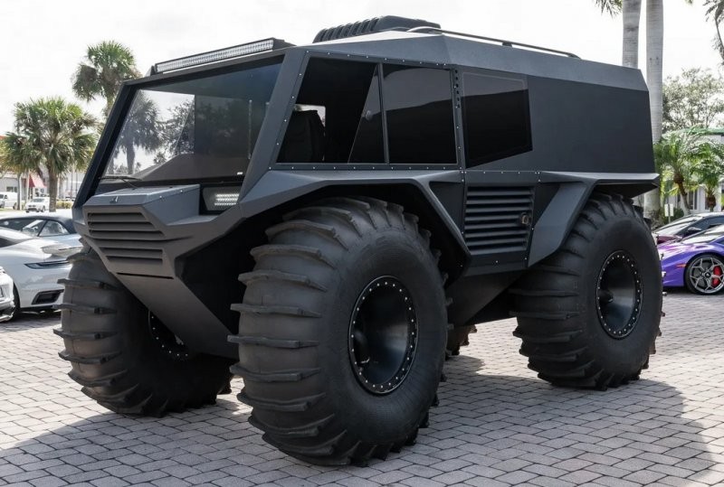 Машину побудували в Україні у 2024 році, після чого її експортували до США, де виставили на продаж у Флориді. Однією з ключових особливостей стали великі 25-дюймові колеса з масивними шинами, які забезпечують як прохідність, так і плавучість.